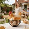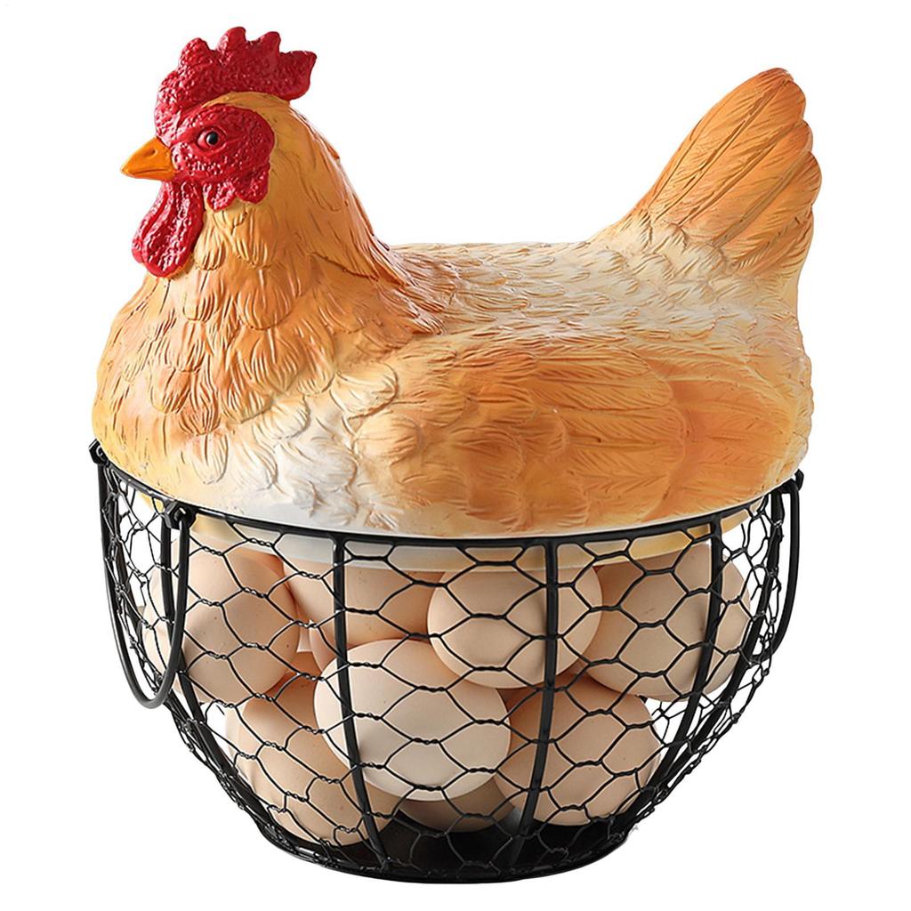 Retro Realistic Hen Hatching Egg Storage Basket With Lid Metal Storage Holder Kitchen Decoration Ornament For Fruit Snack