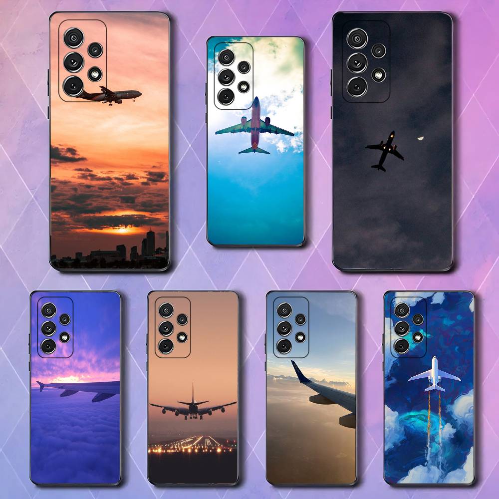 Airplane Travel Sky Luxury Black Phone Case For Samsung Galaxy S23 S24 S25 Ultra S22 Plus S21
