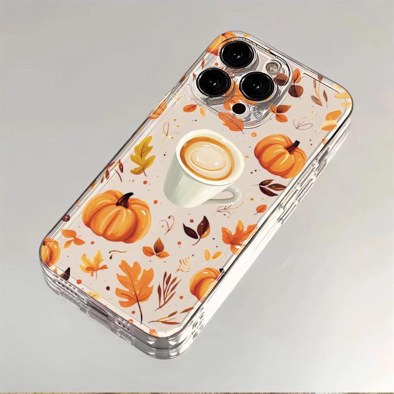 Pumpkin Coffee Autumn Leaves Print Phone Case for iPhone 17 16 15 14 13 12 11 16E Series Pro Max Plus