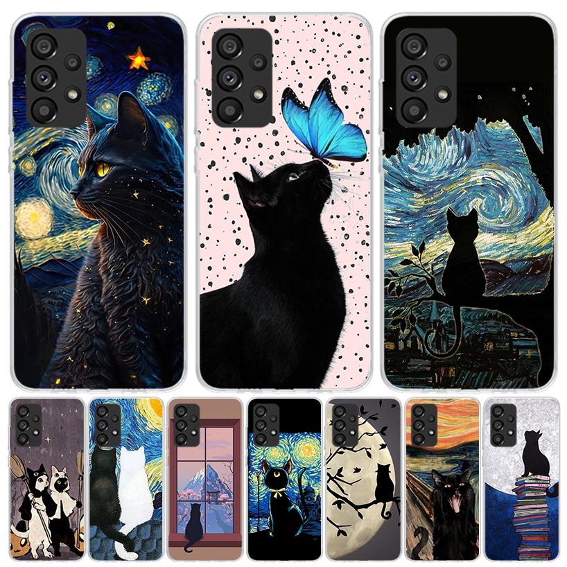 Black Cat Cartoon Cute Phone Case For Samsung Galaxy A13 A14 A15 A16 A53 A54 A55 A56 A33 A34 A35 A36 A23 A24 A25 A26 A05S A04S A
