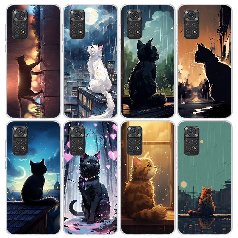 Anime Cat Rain Animal Phone Case For Xiaomi Redmi Note 10 11 12 13 14 15 Pro Plus 11S 12S 14S 11T 11E 10S Soft TPU Back Cover Re