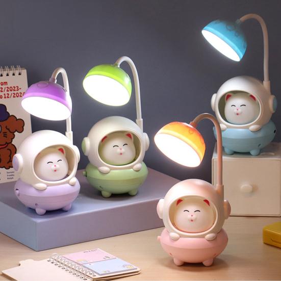 Cartoon Astronaut Cat Desk Lamp USB Rechargeable Flexible Gooseneck Table Reading Light Home Office Bedroom Bedside Night Light
