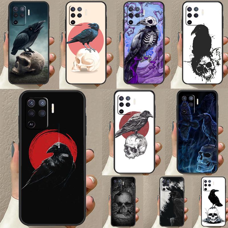 Crow Raven Dark Skull Case For OPPO A15 A16 A1K A54 A74 A94 A52 A72 A83 A91 A93 A53S A5 A9 A31 A53 2020 Cover