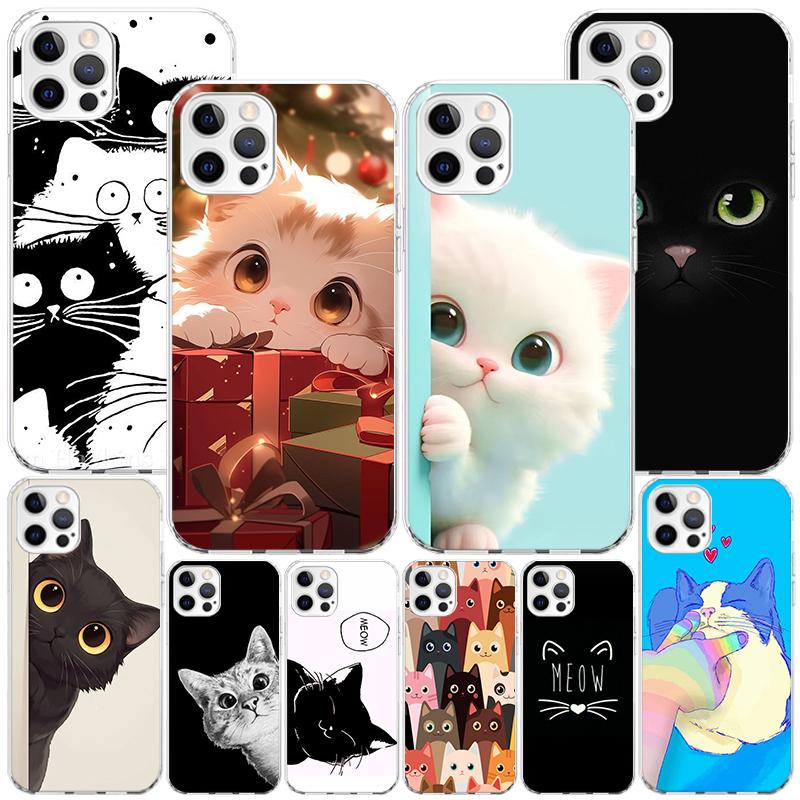 Cat Cute Kitten Cartoon Phone Case For iPhone 17 Air 16 Pro Max 16E 15 + 14 Plus 11 12 13 Mini 7 8 SE Gift Print Cover Fundas 17