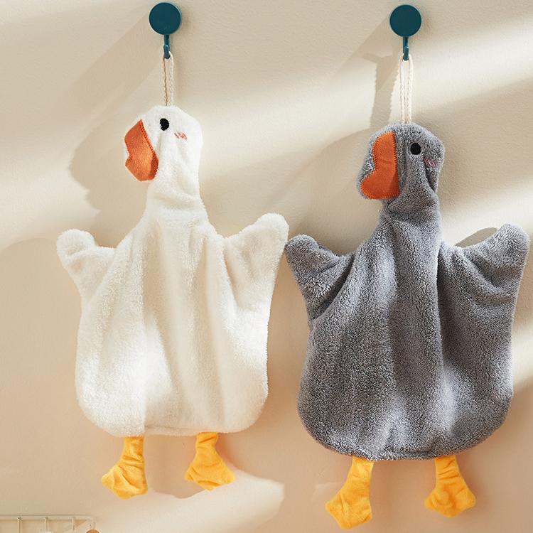 Cartoon Goose Hand Towel Kitchen Bathroom and Toilet Hanging Hand Towel Super Absorbent and Quick Drying