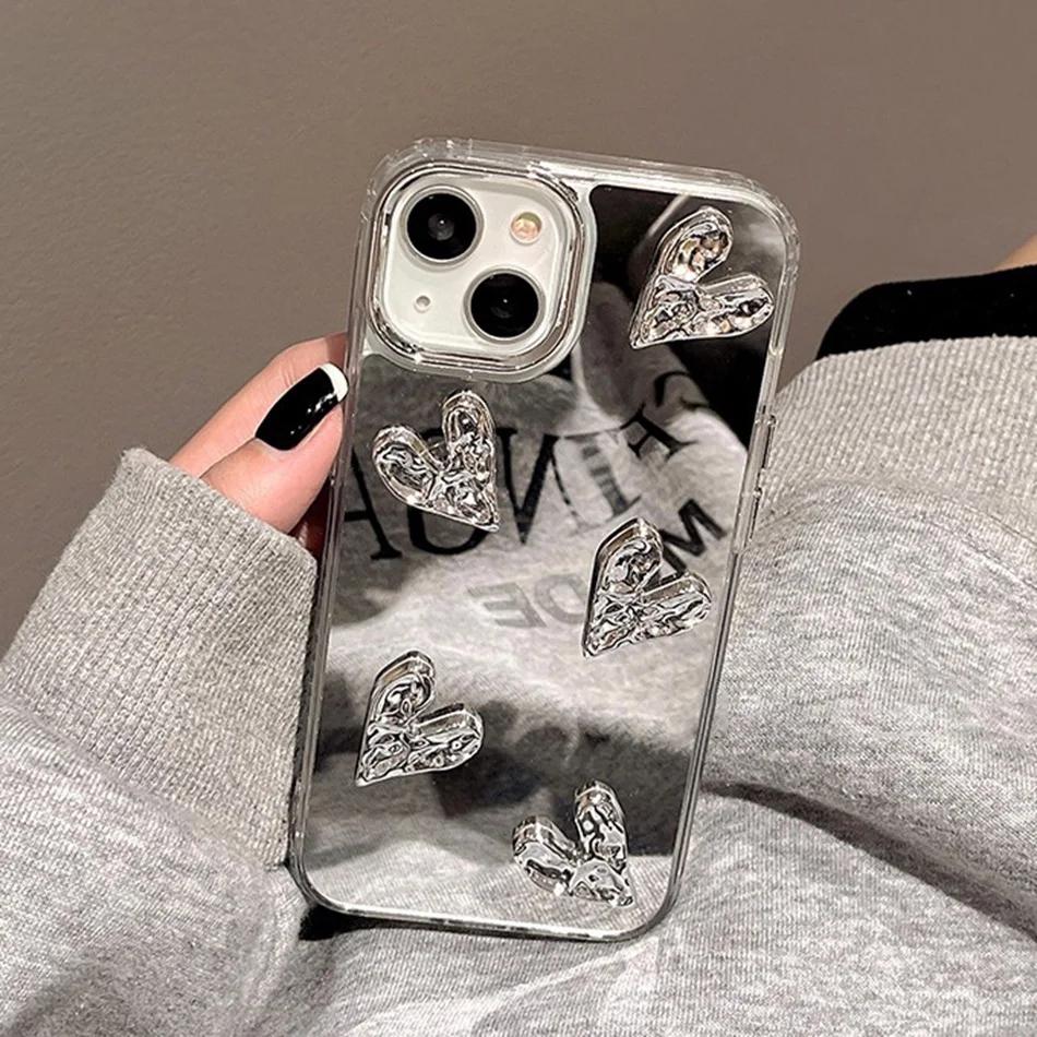 Shining Mirror 3D Heart Case for iPhone 11 12 13 14 15 Pro Max 7 8 Plus SE 15Pro X XR XS MAX Hard Shockproof Phone Cover