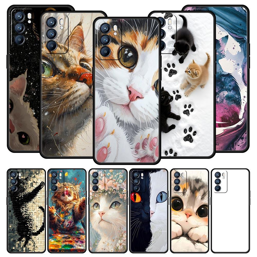 Cute Cat Phone Case For Oppo Reno 13 12 11 10 7 F Find X5 X6 A98 A80 A79 A78 A57 A54 A31 A17 Pro 5G Soft TPU Cover Fundas Capas