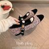 Sheepskin version of grape mother, the same style, Princess Anne, Xiaoxiangfeng tweed badge buckle, Mary Jane single shoes, women's banquet wedding