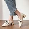 2024 Nou Printemps/Automne Chaussures Simples pour Femmes à Bout Carré Classiques pour Femmes Britanniques Nœud Talon Épais Cuir Souple Talons Hauts pour Femmes