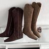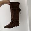 New retro knight boots women's autumn and winter new boots long boots women's two wear pointed pleated pile women's boots