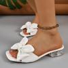 Fashion Elegant Solid White Bowknot Decoration Slip On Sandals Women 2025 Summer Square Low Heels Slides Sweet Party Beach Slippers