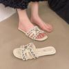 In the summer of 2024, the new Xiaoxiangfeng flat-bottomed antique cool slippers are worn by women with soft-soled fairy-style buttons.