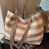 Contrasting striped woven bag women's new commuter shoulder underarm bag vacation wind woven tote bag