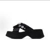 Height increase 7 thin thick-soled slippers for women's summer new models, fashionable bright diamond muffin sandals for women