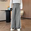 INCERUN Men Zip-up High Waist Plaid Print Tassel Casual Long Trousers Pants