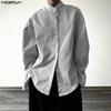 INCERUN Men Spring Lapel Neck 3/4 Sleeve Striped Shirts Casual Oversized Tops