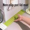 Keep your pot lids organized and secure with this pot lid pad. Featuring a stable and non-slip design with textured stripes, this silicone mat firmly holds pot lids in place, preventing them from sliding on the countertop.