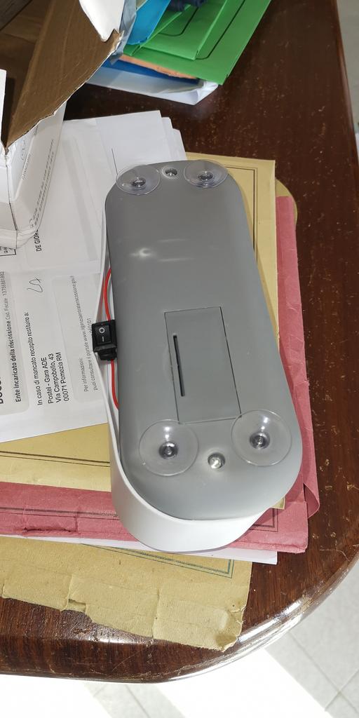 Va a con 2 batterie mini stilo, ha le ventose sotto per tenerlo fermo. Un po' rumoroso, appena avrò anche il detergente lo proverò subito