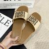 Pantofole da spiaggia a fondo piatto per vacanze estive all'aperto in lino tessuto da donna