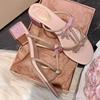 Fashion Luxury Rhinestone Bow Design Sandals Women Chunky Mid Heel Slide Slippers Summer Open Toe Cute Flip Flops for Girls Zapato Mujer