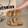 Fashion 2024 Summer Women's Cork Flip Flops Slippers PU Leather Flats Sandals For Women Retro Fashion Garden Mule Clog Slides Cork Shoes