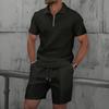 Men's Summer Solid Color Short Sleeve Button Lapel Shirt Shorts Set