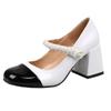 Fashion 2025 Women Pumps Sandals High Heels ShoesSquare Toe Retro Leather Sandals Black White Patchwork Walking Shoes Retro Female