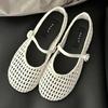Flats Women's Shoes 2025 Spring New White Grass Mat Weaving Effect Buckle Strap Decoration Ballet Round Head Flat Shoes Women