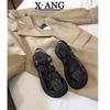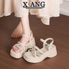 Super soft bottom first layer cowhide sandals women's summer wear with skirt thick heel with women's shoes
