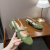Fashion Ladies Shoes Print Thick Heel for Party and Weddings Green Closed Half Women's Sandals Pearl Block Chunky Korea Daily Pvc or Vip