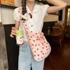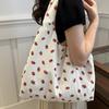 Versatile Corduroy Printed Tote Bag Student Class Make-Up Bag Large Capacity Shoulder Bag Strawberry Canvas Bag Bag