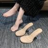 High-heeled slippers women's summer new one-word with PVC outer wear fashion crystal and slippers ladies