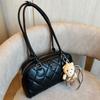 Quilted PU Shoulder Bag with Plush Bear Option: Weighing 0.27kg, it has a quilted texture, a classic shoulder bag silhouette, and comes with an optional cute plush bear charm. Supports single - shoulder wear (72cm adjustable strap). Perfect for adding a sweet, stylish touch to daily outings, dates, or casual gatherings.