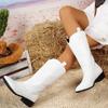 Fashion Retro Embroidered Western Cowboy Pure Color Chunky Heel Pointed Toe Ort Boots for Women Faionable Autumn New