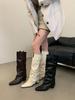 Thick Heel Black Over Knee Pile Long Boots Women's Shoes 2024 New Autumn and Winter Pointed Skinny Knight Boots