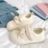 Platform white shoes women's 2024 spring new Velcro white canvas shoes ugly cute big head shoes cookie sole single shoes