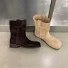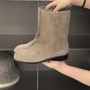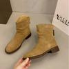 2024. gada jauni korejiešu Dongdaemun ins stila nišas retro modes sieviešu zābaki apaļa galva bieza papēža zamšādas mazi īsi zābaki