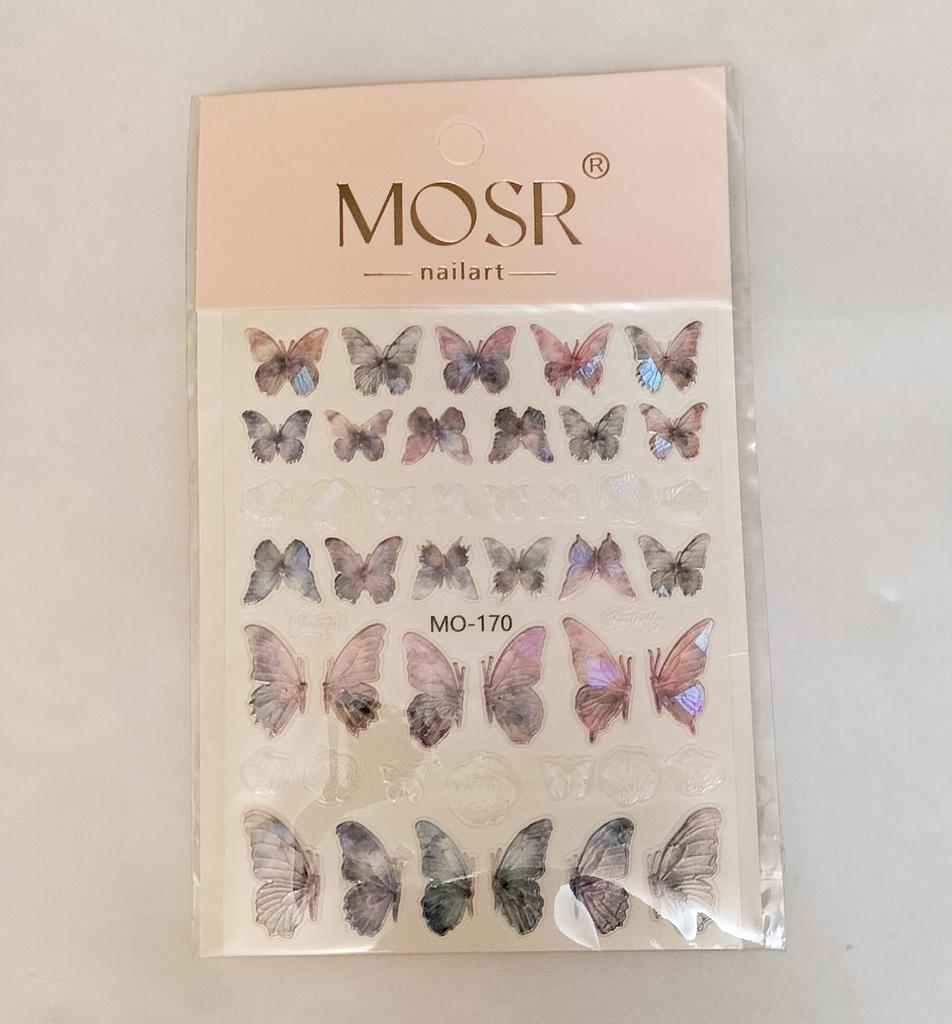 Fargerike sommerfugllasermanikyrdekor-glidere Relieffgravert 5D-pregede negleklistremerker Nail Art-klistremerke