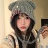 Forlatt bjørnedukkehatt søt retro denim beret knapphull øre ansikt liten brodert hatt.