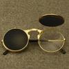 Nye Steampunk Solbriller Runde Metall Damestil Retro Flip Dobbel Lens Solbriller SIRKEL SOLBRILLER Trend Motebriller