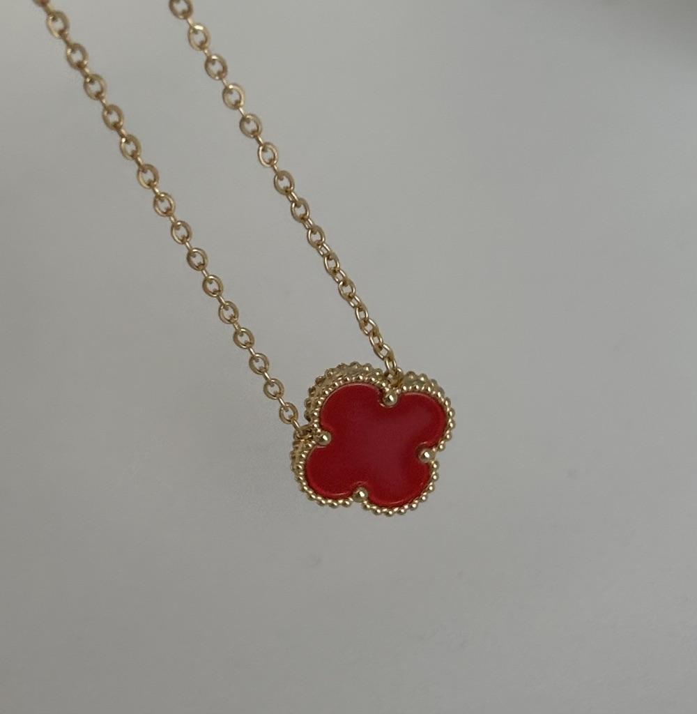 15 mm nett rødt firkløver halskjede av høyverdig titanstål mister ikke farge Dame halskjede Enkelt temperament kragebeinskjede