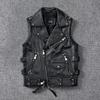 Heavy Locomotive Vest First Layer Pure Cowhide Leather Jacket Men's Leather Vest Slim Short Cycling Clothes Trend