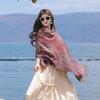 Four Season Imitation Tie Dye Printed Ethnic Style Scarf, Women'S Retro Famous Ethnic Style Blue And White Porcelain Sunscreen Cloak, Large Shawl