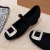 Drill Buckle Small Square Toe Fleece Lining One Strap Warm Tweed Chunky Heel Mary Jane Single Shoes