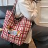 Casual Commuting Large-Capacity Bag Female Popular Plaid Crayon Dog Shoulder Bag College Student Tote Bag