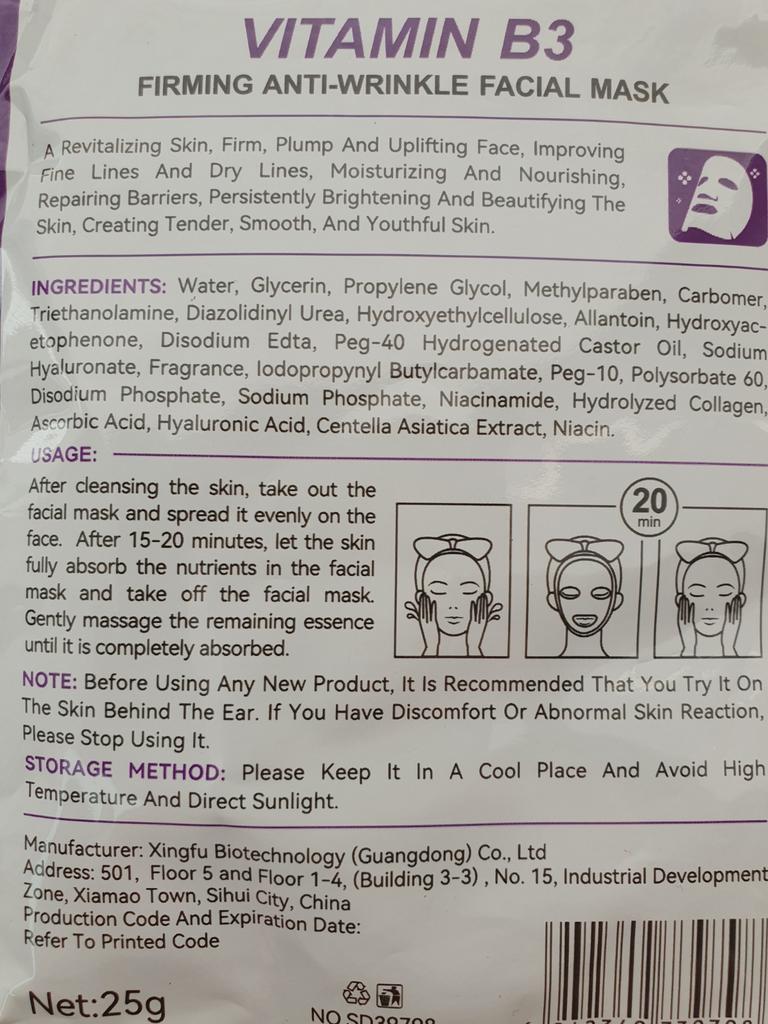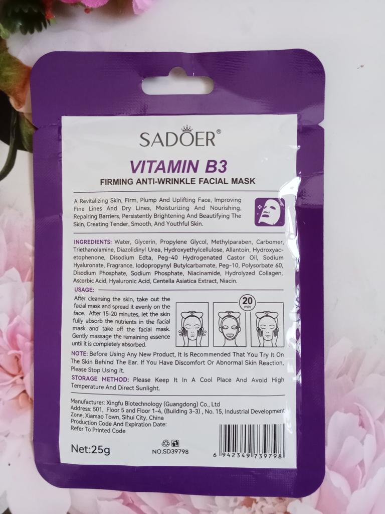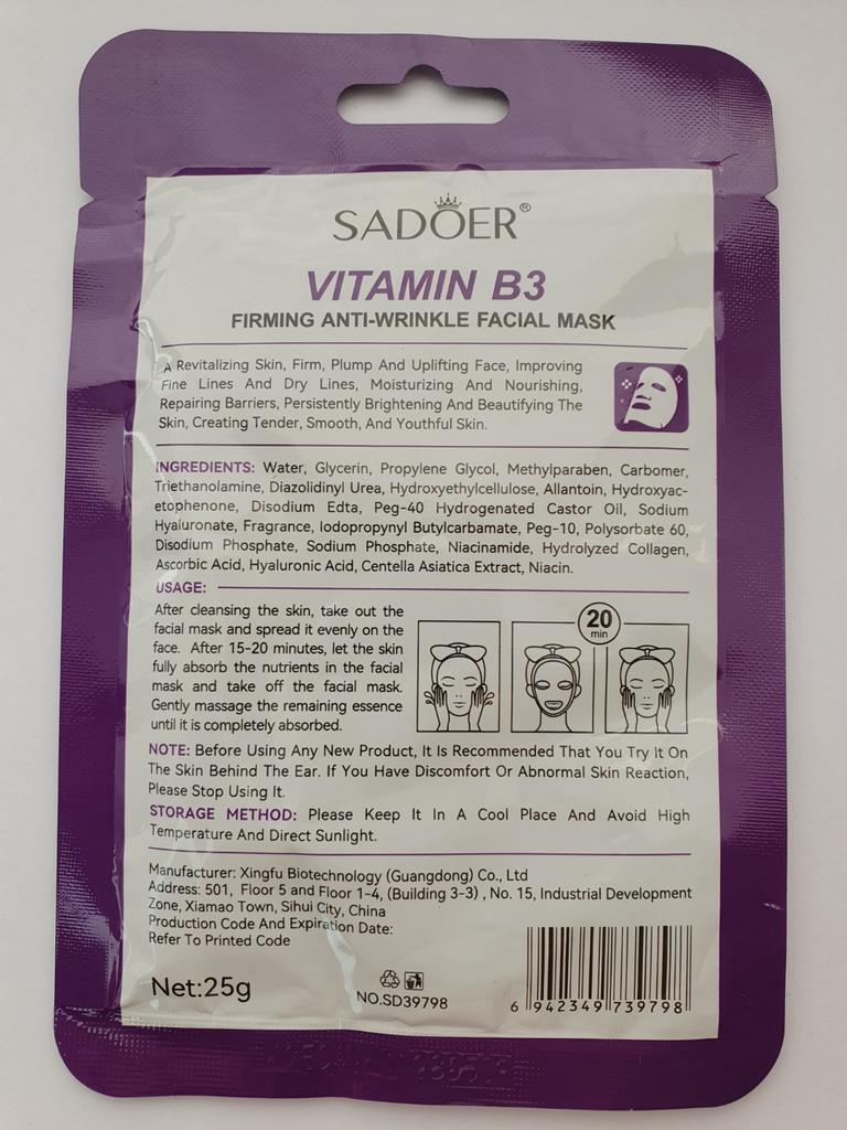 Vitamin Series Mask Moisturizing Repair B3 Moisturizing and Hydrating Mask Moisturizing and Moisturizing Mask