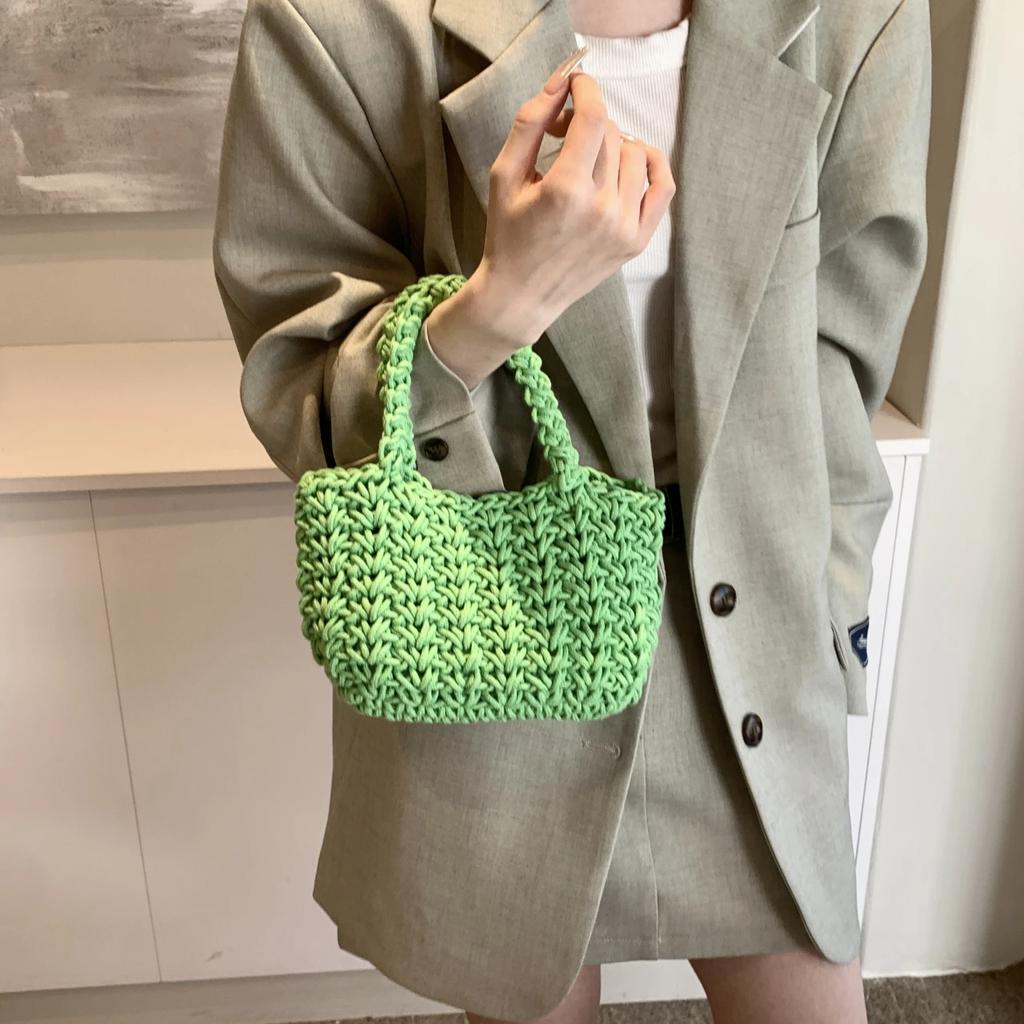 Knitting Basket Bag Women Handbag Summer Beach Bag Boho Polyester Rope Handmade Woven Bag Female Designer Hand Bag