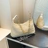 2025 new holiday style straw weaving women's summer popular weaving seaside beach large capacity chain shoulder tote bag