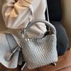 New woven bucket bag, large-capacity fashionable weaving, simple contrasting color, shoulder bag, messenger bag.