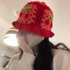 Women Cherry Theme Stretchy Knitted Hat Fashion Hollow Ruffles Vibrant Bucket Hat Bowler Hat Handmade Crochet Cute 58cm
